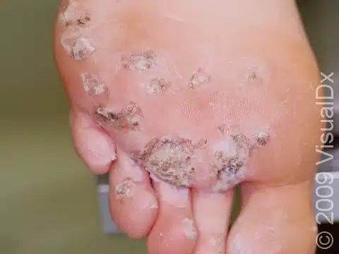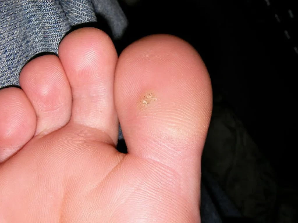 اگر فردی مبتلا به زگیل کف پا باشد این بیماری میتواند خود را به صورت پوسته ریزی و قرمزی نشان دهد. گاهی اوقات خود فرد اطلاعی از بیماری خود ندارد و تصور میکند دچار اگزما یا حساسیت و خشکی معمولی پوست شده است. در استخر و مکانهایی با رطوبت زیاد، قارچها میتوانند از این طریق به یک فرد دیگر منتقل شود بنابراین تاکید بر این است که افراد در استخر افراد از لوازم شخصی خود استفاده کنند.